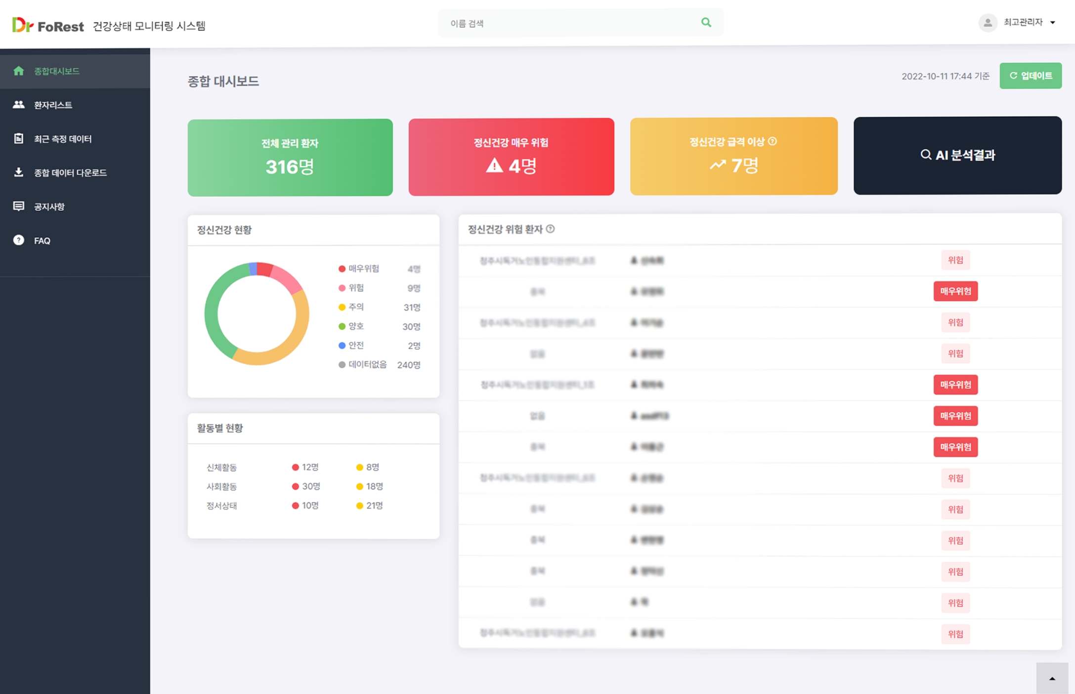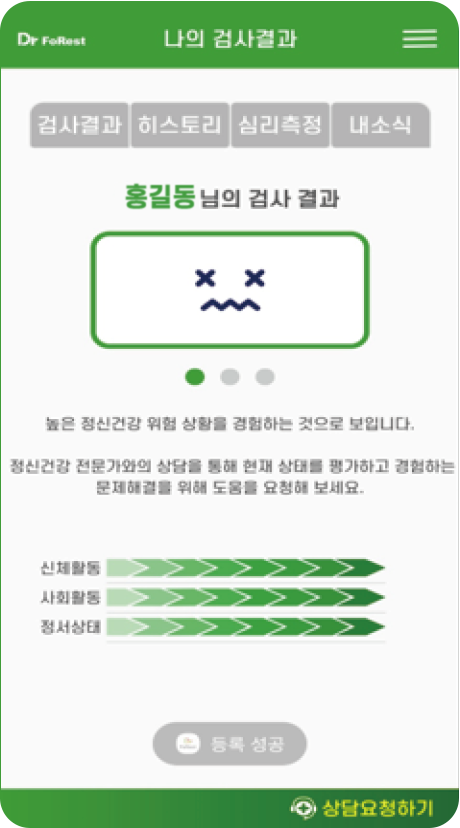 이용자의 정신 건강 위험 정도 및 급격한 정신건강 이상 확인 가능