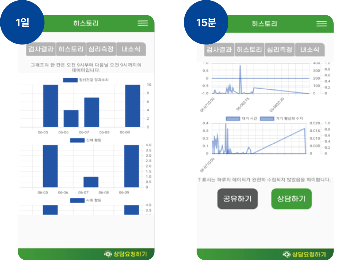 개인 일상생활 패턴의 객관적 데이터 측정 및 수집합니다.