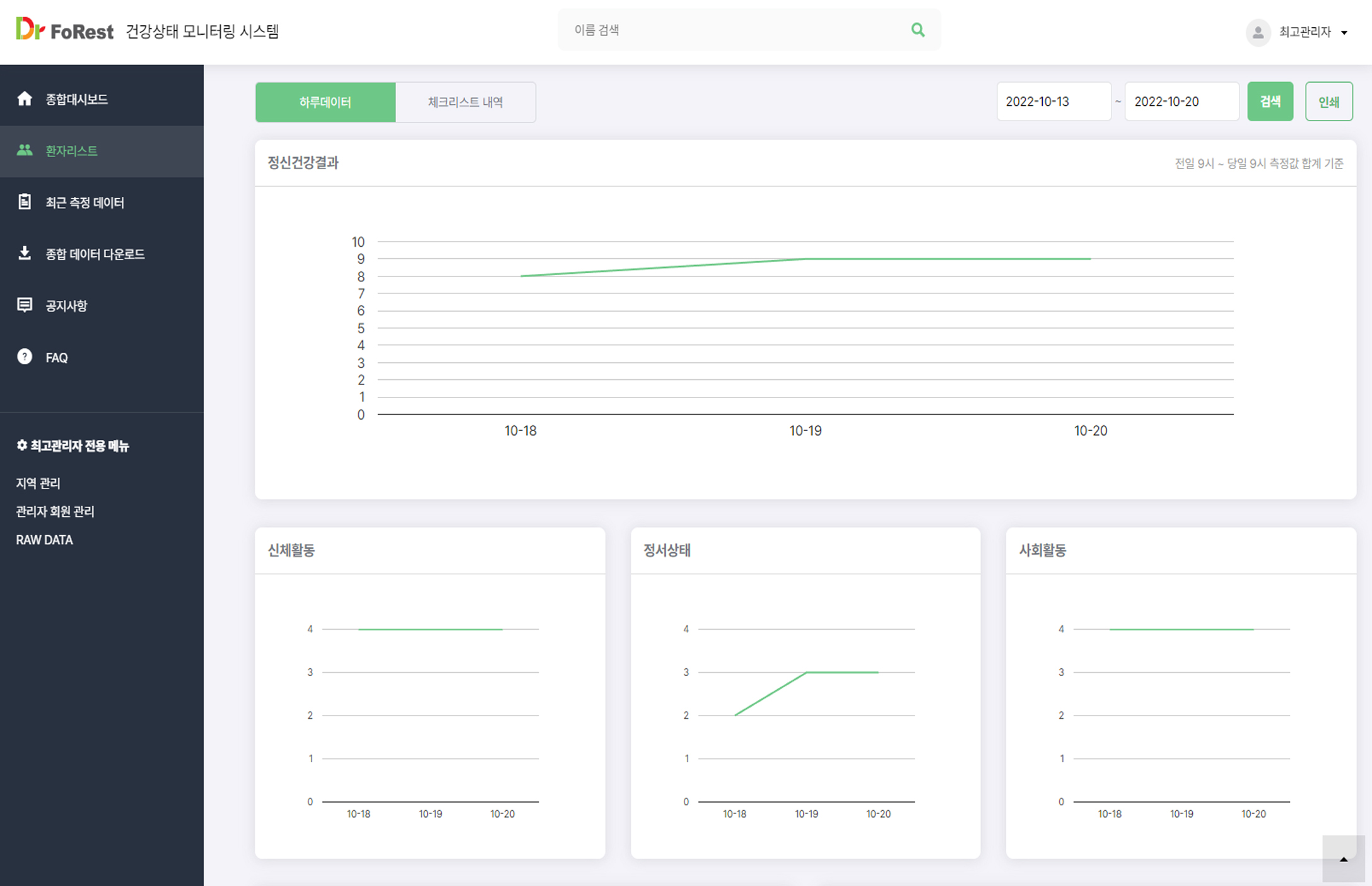 이용자의 정신건강상태를 신체활동, 사회활동,