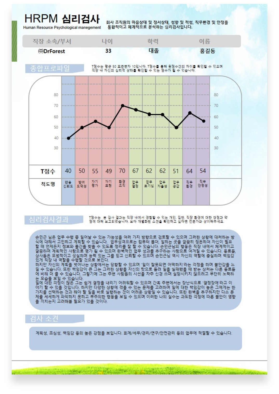 개인의 강점과 약점, 업무 능력에 대한 전반적 분석을 통해 개인, 팀 회사에 대한 업무 상호 작용 수준을 분석